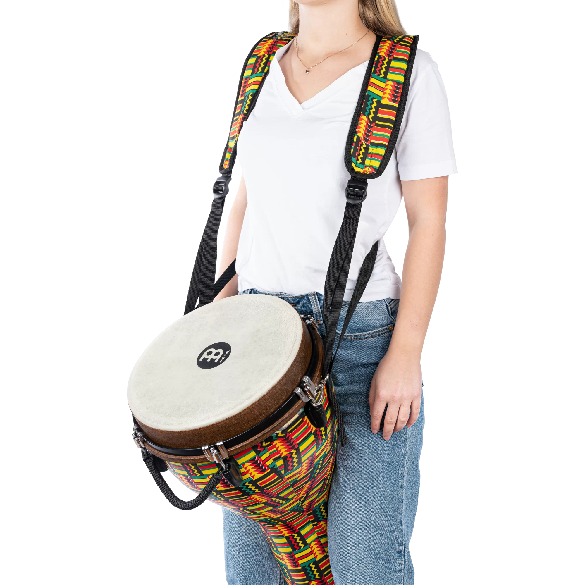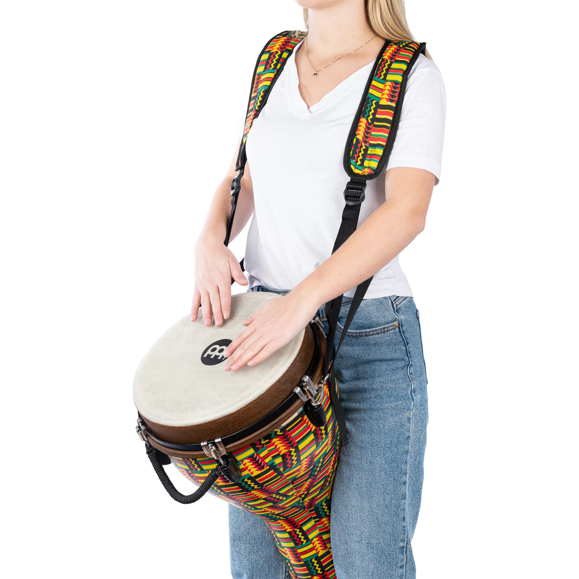 Cintura per nylon Djembe in colore nero. L’imbracatura Meinl è progettata per mettere comodamente e in modo sicuro qualsiasi Djembe o un altro tamburo in una posizione perfetta per essere toccata. È possibile regolare la lunghezza e il riempimento delle cinghie in nylon ad alta resistenza per una posizione ottimale.
