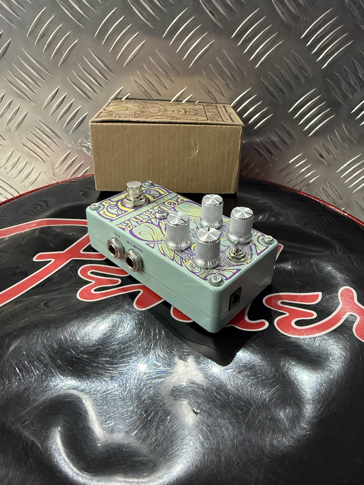 I riverberi flessibili del Polara coprono uno spettro completo, dal calore intimo “Room”, alla vasta espansività “Hall”, attraversa il tempo con la potenza cosmica del “Reverse”, e ancorato dai venerati riverberi Lexicon “Modulated”, “Plate” e “Spring”. Oltre ai classici riverberi, il Polara presenta il nuovo riverbero “Halo”. Il riverbero “Halo” con ottave in cascata intercalate nel decay del riverbero lancerà un bagliore celeste sul tuo suono. Il Polara offre i controlli Level, Liveliness, Decay e Type indipendenti, ingressi e uscite stereo, un footswitch morbido ed uno switch Riverb Tails On/Off. Lo StompLock è un nuovo dispositivo unico che si adatta perfettamente alle manopole del Polara per proteggere le impostazioni finemente regolate da cadute, urti e calci inevitabili quando si suona.